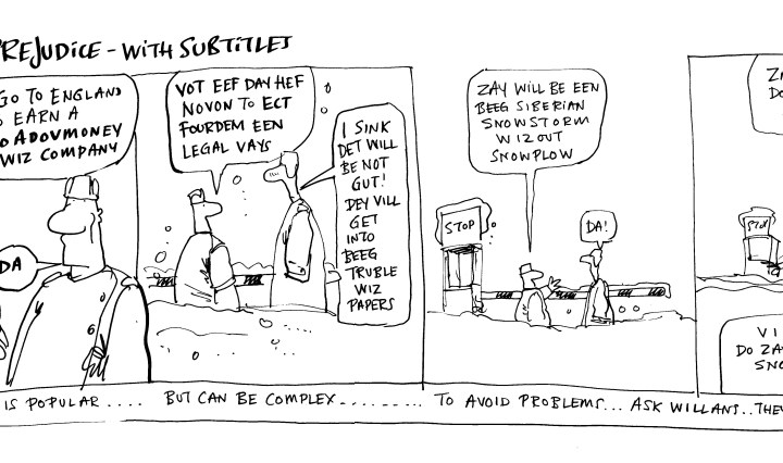 Digging through some old paperwork I came across this cartoon strip. I used to have a regular commission for a local firm of lawyers for their newsletter.They’d give me a grey old crusty subject and then I’d be forced to … Continue reading What’s so funny about accents?