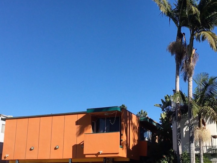 A slight departure from signs. This orange house on a street near to a 1920s house/ museum that we had visited. I was expecting to be under whelmed by the trip but thoroughly enjoyed seeing the house which is in West Hollywood and is pictured below.