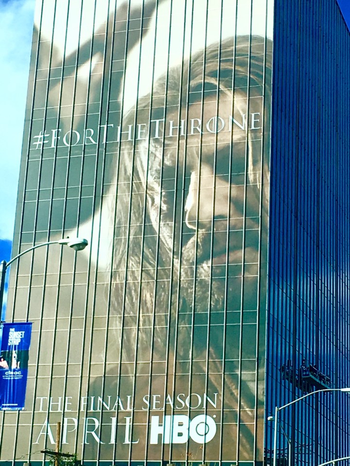 Many years ago I thought I’d arrived when one of my drawing appeared on a 64 sheet poster. That’s one of the uk posters that are at the roadside and not like this on a huge gantry. The state of “arrival” here I would think is when one has a poster on the entire side of a building, like the one below. 64 sheets is supposed to represent the number of separated printed sheets that make up a poster, so it’s pretty big. I doubt that they do it that way any more, certainly for the side of a building.