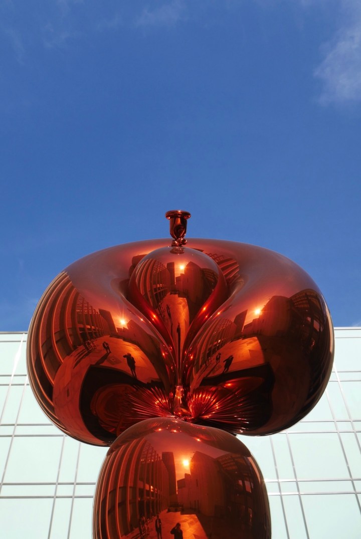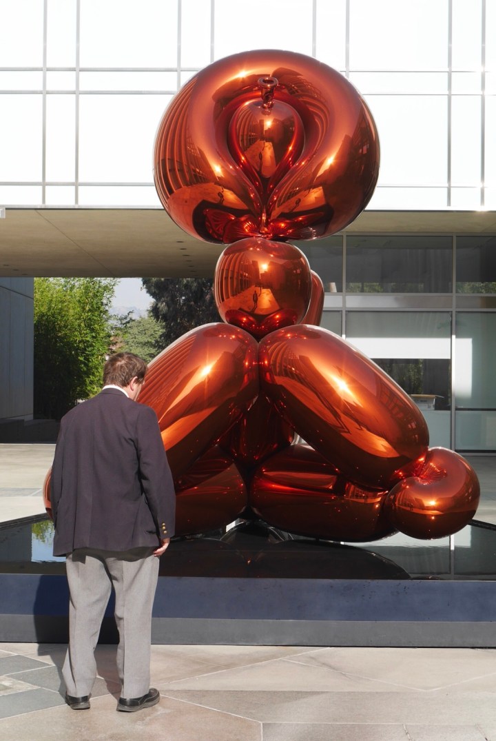 You will be stationed next to a large metallic object the looks like a massive toy balloon and is the work of world renowned artist Jeff Koons. This is an exceptionally tactile piece of his work and is set on a plinth at the LACM Galleries here in Los Angeles. This plinth also reflects the work.