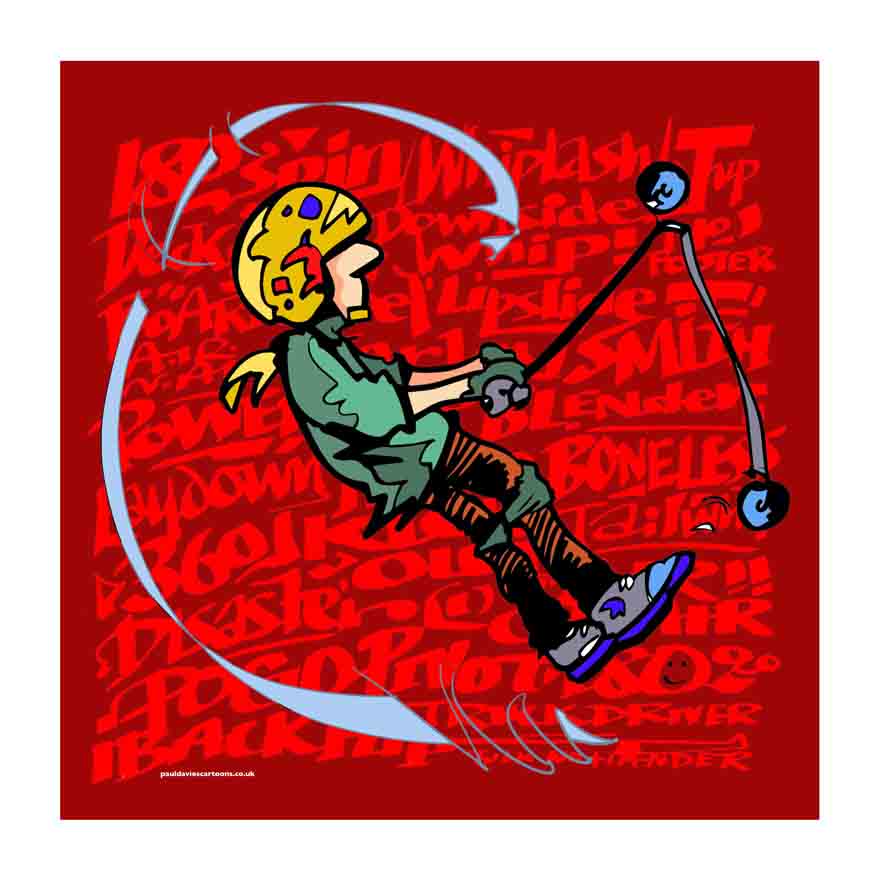 It was actually a good idea. If you’ve not experienced the world of scooters then prepare to be surprised. Those little scooters that kids fly around on are brilliant bits of very strong engineering and kids of all ages are wont to do stunts and tricks on them. Locally there’s a “Scooter Park” where they can zip up and down ramps and come to as little harm as possible. As part of my research into the project I went along to take a look at the place and watch the little demons buzzing around like angry wasps, doing all sorts of tricks and flips. It was a bit like skateboarding with a wheeled plank. Some of these scooter riders are tiny, others look like they might just have left home. They even have World Championships for this sort of thing. Check it out from the link.