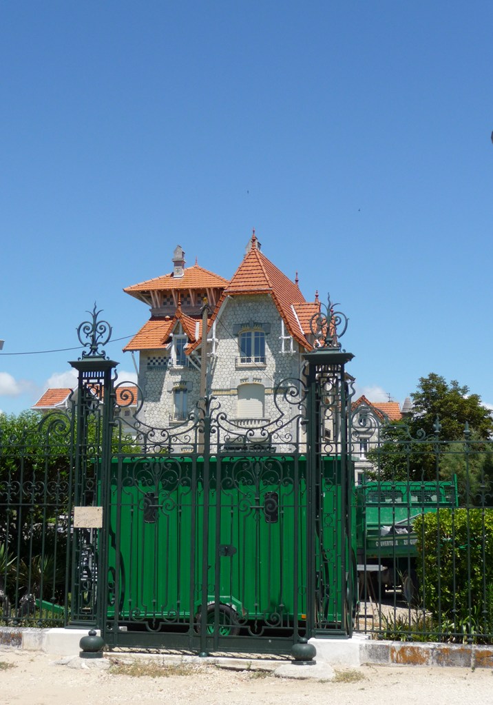 Another French house in the same location as the previous two posted here. What to make of this? Looks like a rather elegant French birthday Cake with the max security disguised as rather elaborate over wrought iron. Again this house looks out over the Atlantic and the beach.