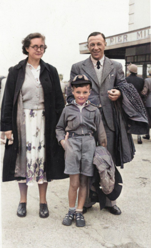 My mother’s sister Alice, her husband Stan and their son Peter, my cousin. This photograph was probably taken by one of those beach photographers that one used to find in British seaside resorts in the 1950s. I can see that Alice is not too enamoured by the prospect of having it taken, she never really liked having her picture taken much. She and my mum were so close that she would lick the chocolate off my mum’s caramels as she did n’t like it. She did like the caramel which Alice left for her. In many ways they were alike and in others quite unlike each other. Stan was the archetypical working class man, a fitter at a large glass factory in St Helens, he kept their fleet of trucks on the road. St Helens is sometimes known as Glasstown as it was the home of Pilkington Glass. My Grandfather worked there, my Aunty Mabel worked there, but Stan worked for United Glass, another massive glass company in the town. The two of them made their home in the town in a small house which they never moved from, and it was there that they brought up my cousin Peter. They were devoted to him, working hard to give him every advantage they could, which he repaid in full.