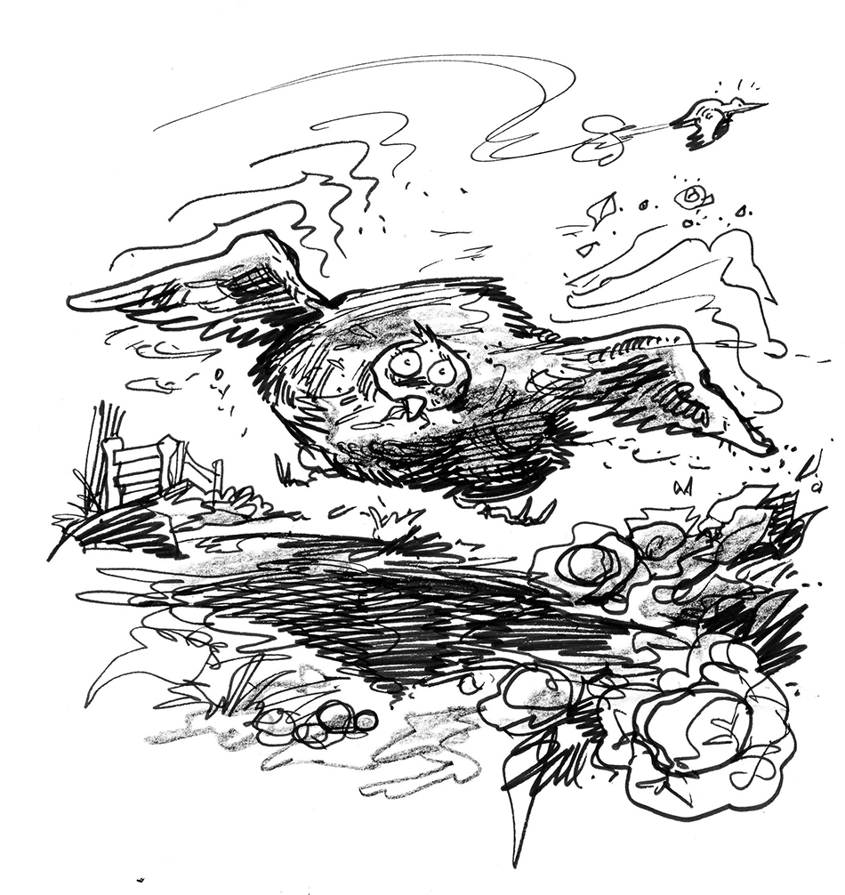 This is a drawing done for a small book I’m working on for my grandchildren, all about the monsters on the plot. It’s intended to be in colour in due course, but I always like doing the line bit as it’s all without computer. I’ll be posting more of them as we go along and might post the odd spread from the book.