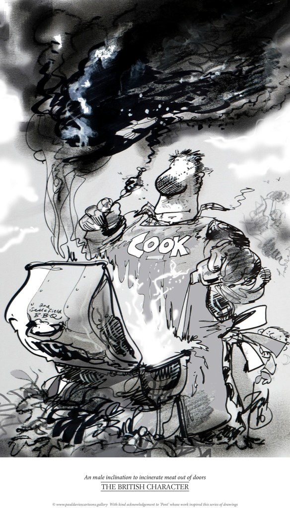 This was from a few years ago when I had an exhibition of drawings inspired by “Pont”, and early Punch cartoonist who specialised in drawing the foibles of the British. This was in the late 30s when the concept of men cooking out doors would have been foreign to him, as it is to me now.