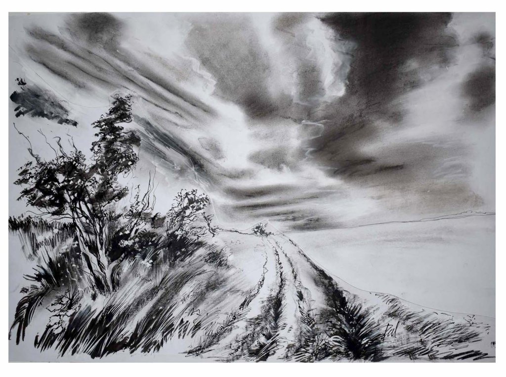 This drawing is from an image taken by my friend Robin. I hope I’ve done his image justice. The walk is above the River Severn quite close to Gloucester. From the top of this hill is a view down to the Severn and over to the Boat at Ashleworth. The Boat being a pub right by the River, which is frequently flooded, so it is then the Boat in the river.