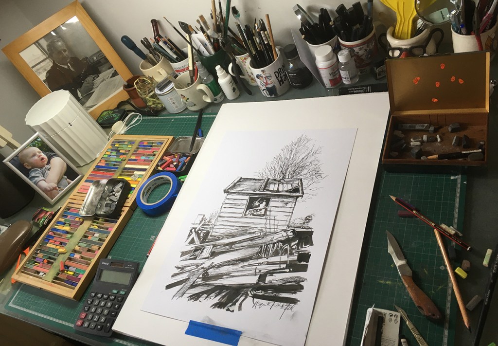 That’s him on the left of this picture, with his great grandad above! Both watching me as I draw a shed. Wonder what the word for shed is in Dutch?