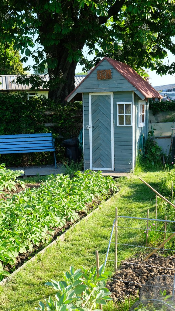 The difference being that the shed is in England. Built from collected pieces of wood and pallets by the chap from Eastern Europe who has this plot. Built on the lines that are familiar to him, no simple stuff here and the colours match too. Great shed. Fine plotter.