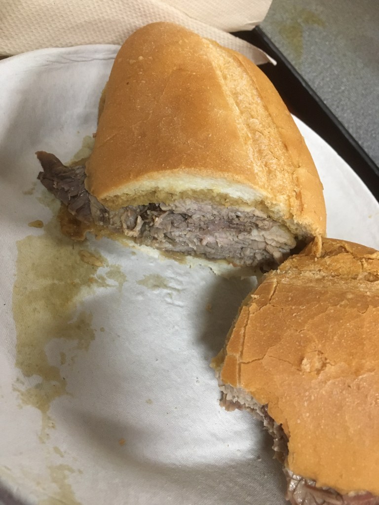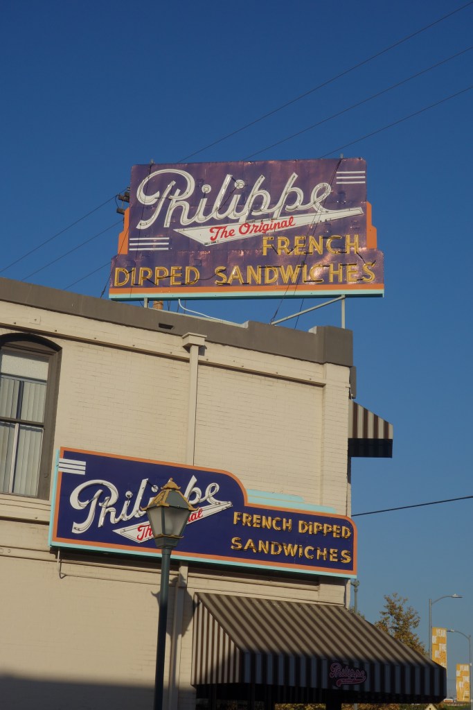 Perhaps downtown L.A. is the right expression. A trip there today to collect a framed print with son in law, gave an impression of what some other parts of this vast city are like. Our destination before the collection was a famous place to get a sandwich. It is famous for its meat sansdwiches and dip, dip being gravy in this case. It’s a sandwich that needs eating fairly quickly as gravy seepage will make it a tad soggy,and you can get one or more pots of gravy to go with it for extra sogginess, possibly suit someone with no teeth.