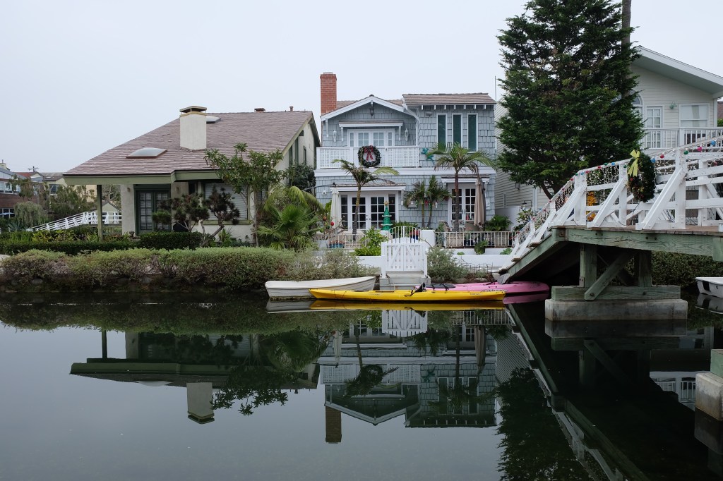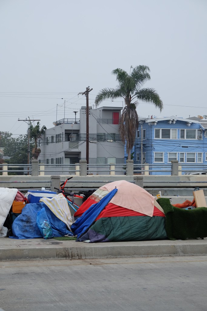 So out we go on a flat grey day ( for California ) or what would be called “not bad for the time of year” day back home. My son in law drove me there and my intention was to take photos of interest, and suggested that we walk down the canals, where small for US standard houses overlook the canals. These places go for around £3.4 million at the very cheap end, and up from there. They have a fine outlook over the waterways but stand cheek by jowl with homeless people’s tents here and there on bridges. The homeless problem is even more marked in this area than anywhere else I’ve seen on this trip. Probably because it is a relatively compact area.