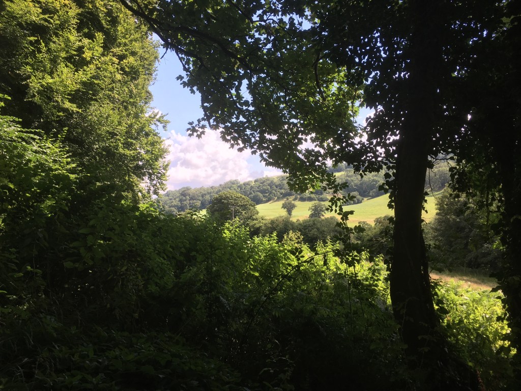 On this walk it occurred to me that this view has probably not changed in centuries. There’s no evidence of modern living in this image, no wires, no telephone masts, and even no houses. That aside there may well have been fewer trees in the old days, we think that it would have been heavily wooded but the fact is that very old photographs show much less wooded area. They did, after all, cut a lot of it down to heat their damp and leaky cottages, now highly desirable second residences for City bankers.