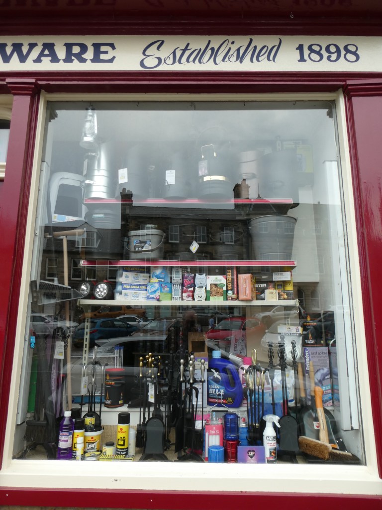 You can tell we’re up North from this picture. They do not expect hours of sunshine up here in the North East and this traditional hardware shop shows of a fine selection of combustibles, as well as equipment for poking the fire? Where else would you put matches in your window display next to fire lighters?
