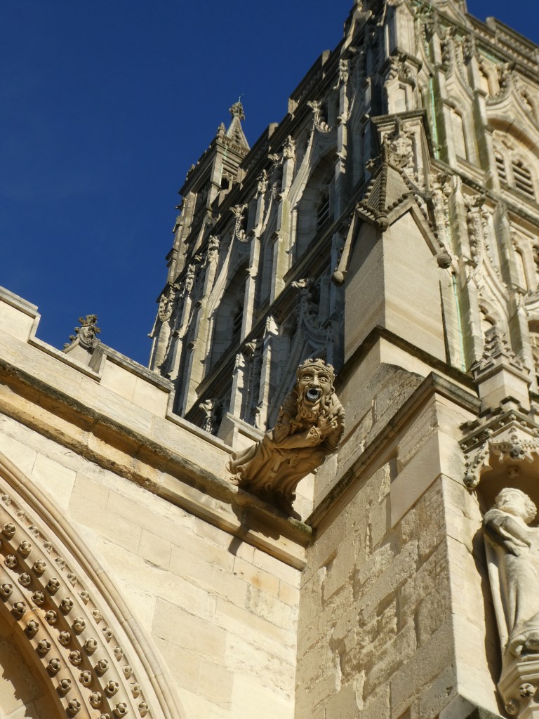 My sausage roll awaited. Taking it and myself then to the Cathedral a short walk away, I began to think this was all just brilliant. The Cathedrals seemed to glow in the midday sun, and I had the chance to take some pictures of the gargoyles. I wanted to locate the one pictured below and soon found it. It’s a fine collection of the art of the modern stonemason. Go and take a look sometime, choose a sunny day for best effect, but a rainy day to see how they drain the rain from the roof. Personally I find the lead pipes that appear on some of these figures don’t look that good. But if they didn’t do it, then the gargoyles would certainly not last very long. After all they are just a way of taking the rain off the roof!