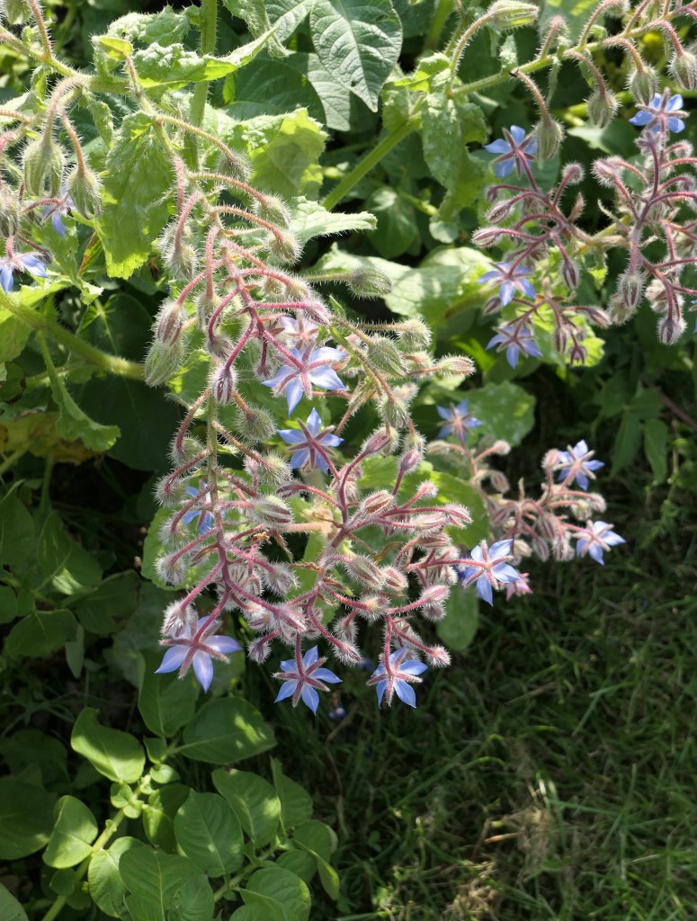 And this is the same bunch of borage taken from below, with resident bee getting his tea.