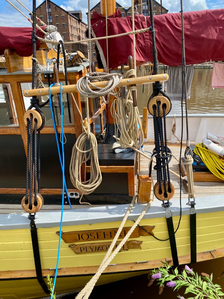 He asked me what I did with a slight Eastern European accent. I mumbled about being retired, he expressed polite surprise, and asked me what I used to do. I told him and then asked what he did. He said he was Hungarian and had been a professional boxer, but he too had retired from that, and now worked for Amway. I wished him luck and went on my way. Not every day you meet a Hungarian boxer. Around the Docks to the boatyard, passing the most beautiful yellow boat, the owner who was faffing about on board, was good enough to answer my questions. He told me it was a restored Danish fishing vessel.