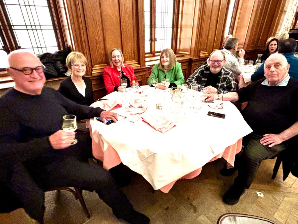 Getting the photo up of us (I’m behind the camera on my phone) into the edit mode of my iPad now, I knew I’d have to lighten up the image a tad but there’s one feature in the editing suite that simply says warmth. There was more warmth in the occasion than I can possibly relate here. Our aim, if there was a ‘brief’ , was to remember our dear friend Dave Christensen, who died recently. Mission accomplished.