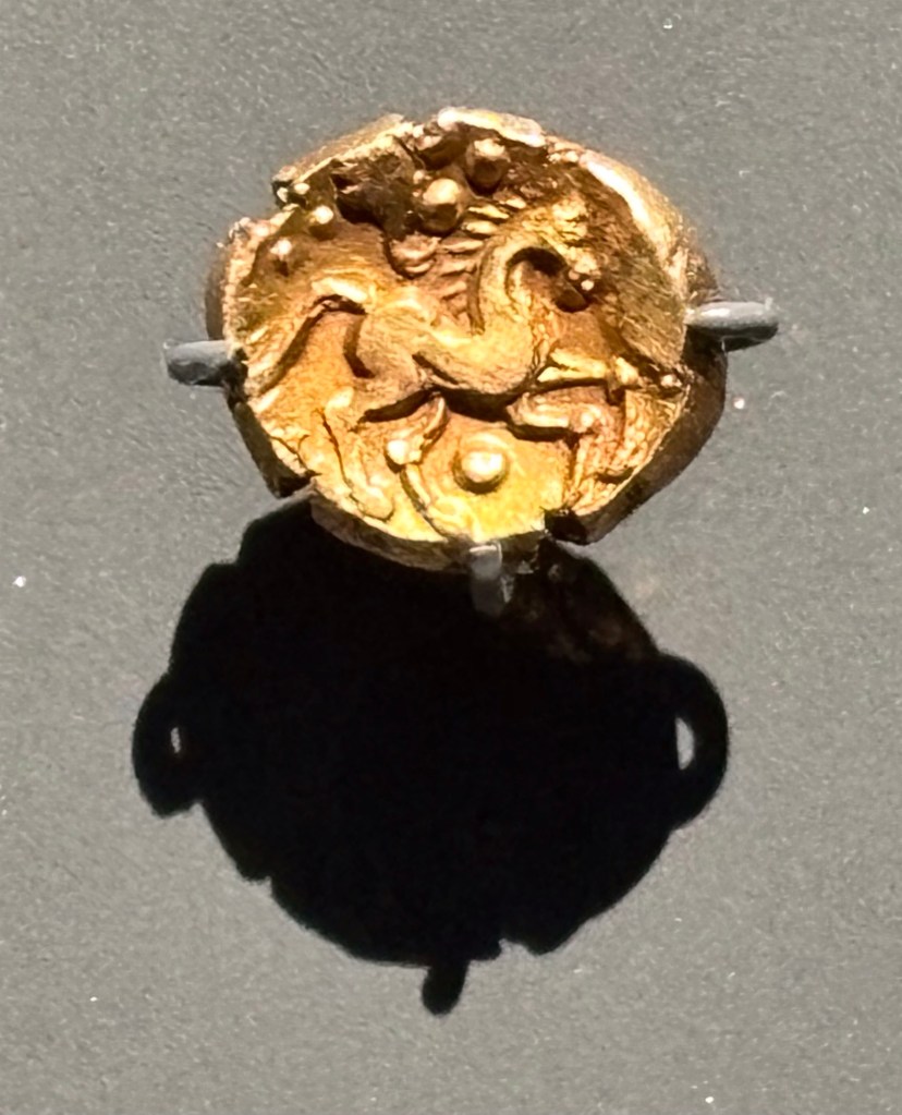 Cirencester is well known for its Roman ruins and ‘finds’ but this coin featured here and found in the area came from well before the Romans wandered into the area with their mosaics and underfloor heating. What have the Romans ever done for us? Quite.