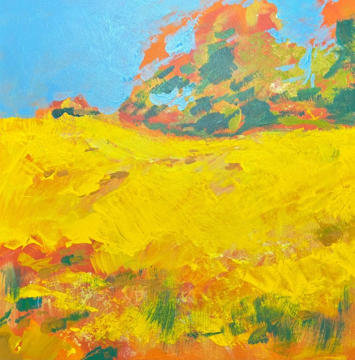 For the New Year, here is my first finished ( well, almost finished painting of a buttercup field in Apperley, just outside Gloucester, on a brilliant Summer day. Loads more to come, and yes, there will be sheds.