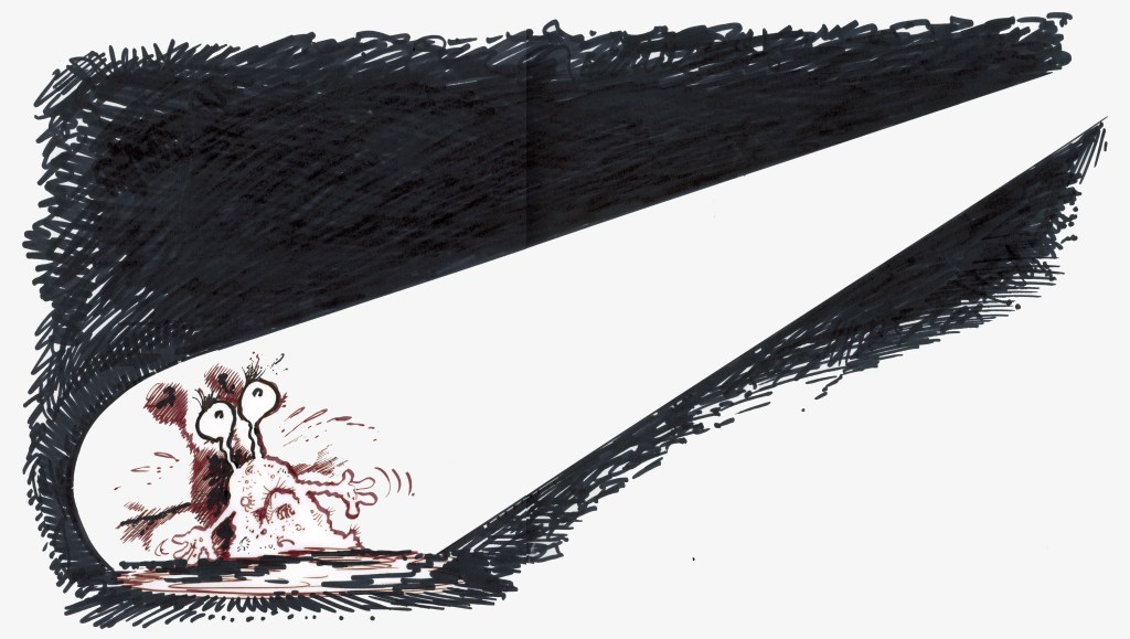 Another from the bottom drawer, I have no idea who commissioned this, but someone did. Yes, folks, I was paid money for illustrating a ‘frightened blob.